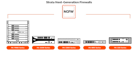 - Pare-feu physiques : Les pare-feu de nouvelle génération de la série PA sont conçus pour assurer une protection cohérente de l’ensemble du périmètre de votre réseau, depuis le siège social et le campus de vos bureaux, vos succursales et votre centre de données jusqu’à votre personnel mobile et distant. Les pare-feu physiques disponibles comprennent les séries PA-220, PA-800, PA-3200, PA5200 et PA-7000